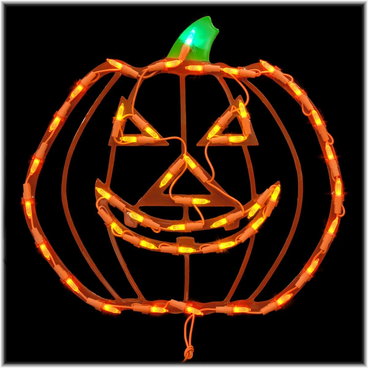 Our 14″ LED jack o’ lantern ornamental will illuminate your fall holiday with brilliance and style! This beautiful window decoration comes fully assembled and includes these features: