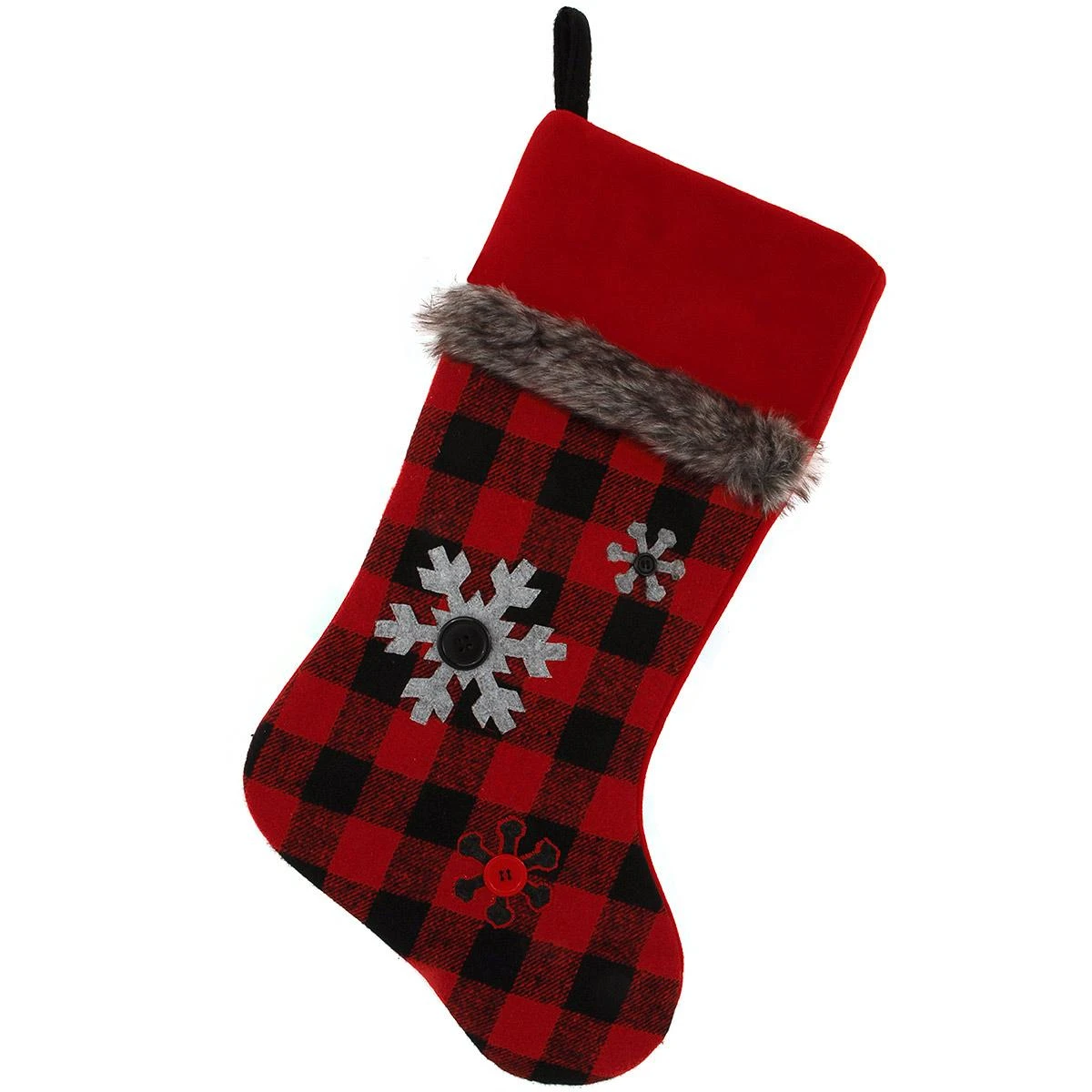 Pretty in a plaid with felt snowflake embellishments, it won’t be hard to cozy up to this rustic stocking! Our 20½” wool-woven plaid stocking has a plush red cuff trimmed with gray faux fur that’s perfect for showcasing a special name! Allow Bronner’s to add the name of your choice in vivid black stitching at no additional charge.