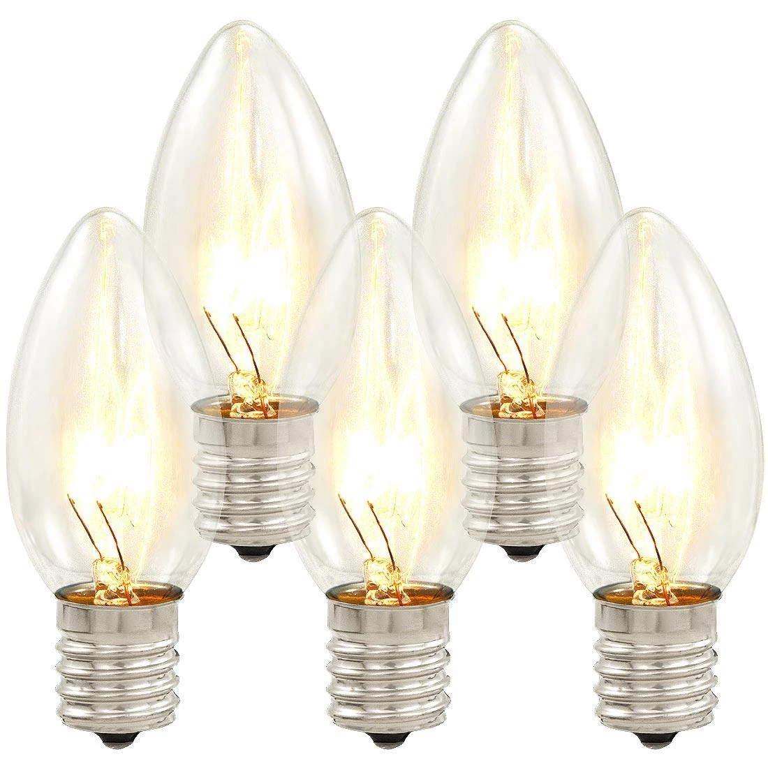 Restore a brilliant and elegant flair to that old light strand with this deLIGHTful pack of transparent C9 replacement lamps! 25 clear C9 replacement lamps will shine brightly with a classically clean appeal. Commercial grade, these replacement bulbs feature weatherproof bases and fade-and peel-resistant coatings to withstand winter weather and corrosive ocean air.