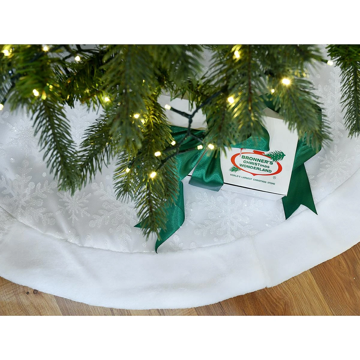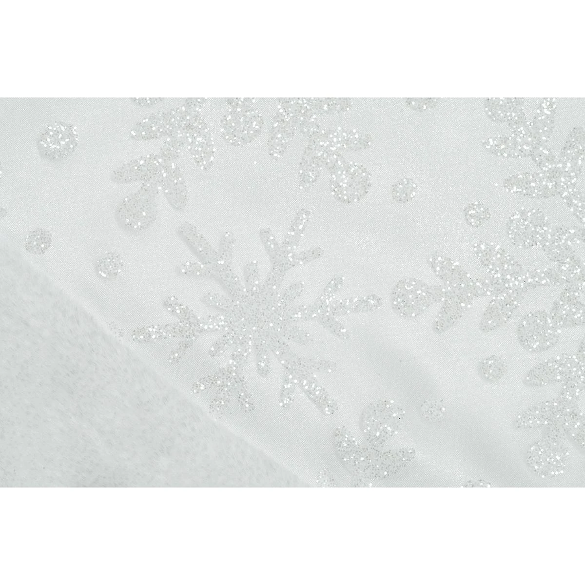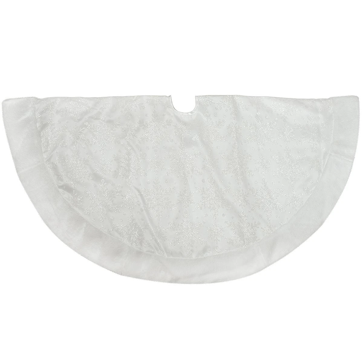 Add a wintry wonderland vibe with this elegant white organza tree skirt! Our 48″ tree skirt glistens with flurries of white glitter snowflakes, and is edged with a plush, white border. Fully lined in white sateen, skirt features hidden Velcro strips to hold it securely in place.