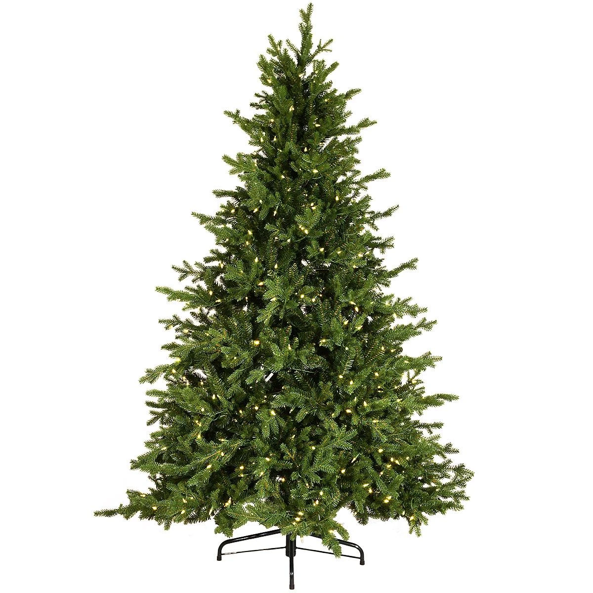 Your holidays will be merry and bright when you gather around this brilliant 6.5′ Vienna Artificial Tree pre-lit with 600 White LED Lights. Tree comes in 3 sections and features hinged branches (3,063 tips) with 55″ diameter and weighs 37 lbs. 5 year warranty for tree and 3 year warranty for lights. Please select the alternate image to view branch details. (PLEASE NOTE: Larger 7.5′ tree is pictured.)