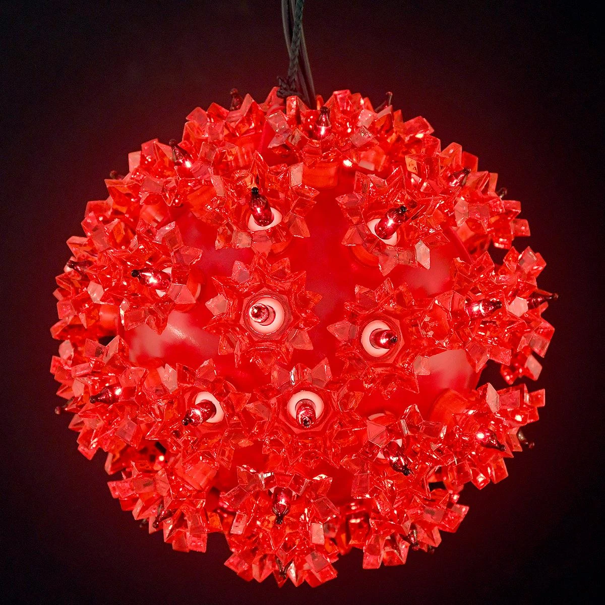A brilliant choice for your holiday dΓ©cor, this 6″ RED sphere with 50 red lights is as versatile as it is beautiful. Hang ball outdoors from tree branches, porches, gutters, and balconies or decorate indoors to brighten Christmas trees, mantels, centerpieces and more. Bright light sphere will stay lit even if one lamp goes out. Features include: