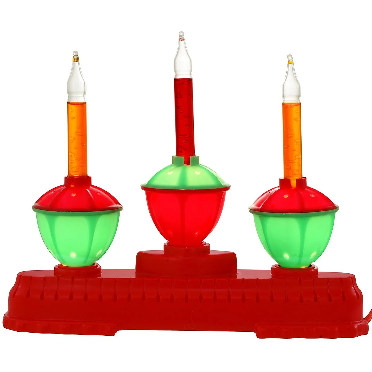 You’ll be bubbling over with joy every time you gaze at this de-light-ful holiday display! Our stylish candelabra features a trio of red and green bubble lights with mesmerizing bubbling action. 5¾” tall x 7″ wide lighted display is wired on an approximate 52″ red cord with convenient on/off switch.Â