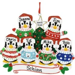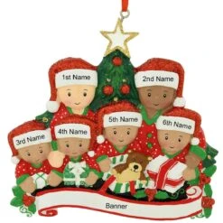 Personalized Biracial Family Of 6 Opening Gifts Resin Ornament