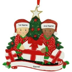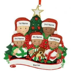 Personalized Biracial Family Of 5 Opening Gifts Resin Ornament