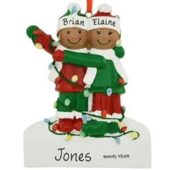 Personalized African American Couple Tangled In Lights Resin Ornament