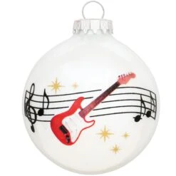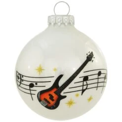 Personalized Electric Guitar With Music Staff And Stars Glass Ornament