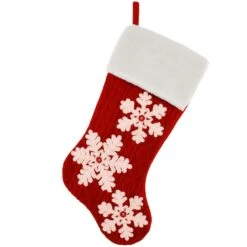 Personalized 20.5 Inch White Fur Stocking With Silver Snowflakes And Velvet Cuff