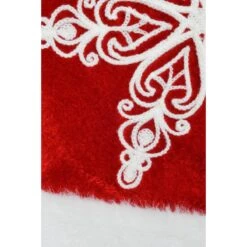 48 Inch Red Velvet Tree Skirt With Snowflakes And White Fur Border