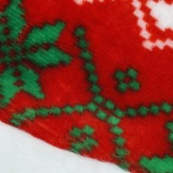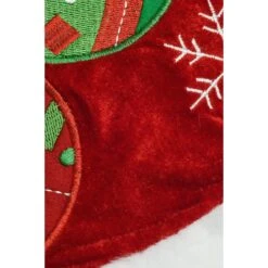 48 Inch Red Velvet Tree Skirt With Green And White Snowflakes And Fur Border