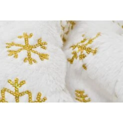 48 Inch White Fur Tree Skirt With Silver Snowflakes And Gold Swirls