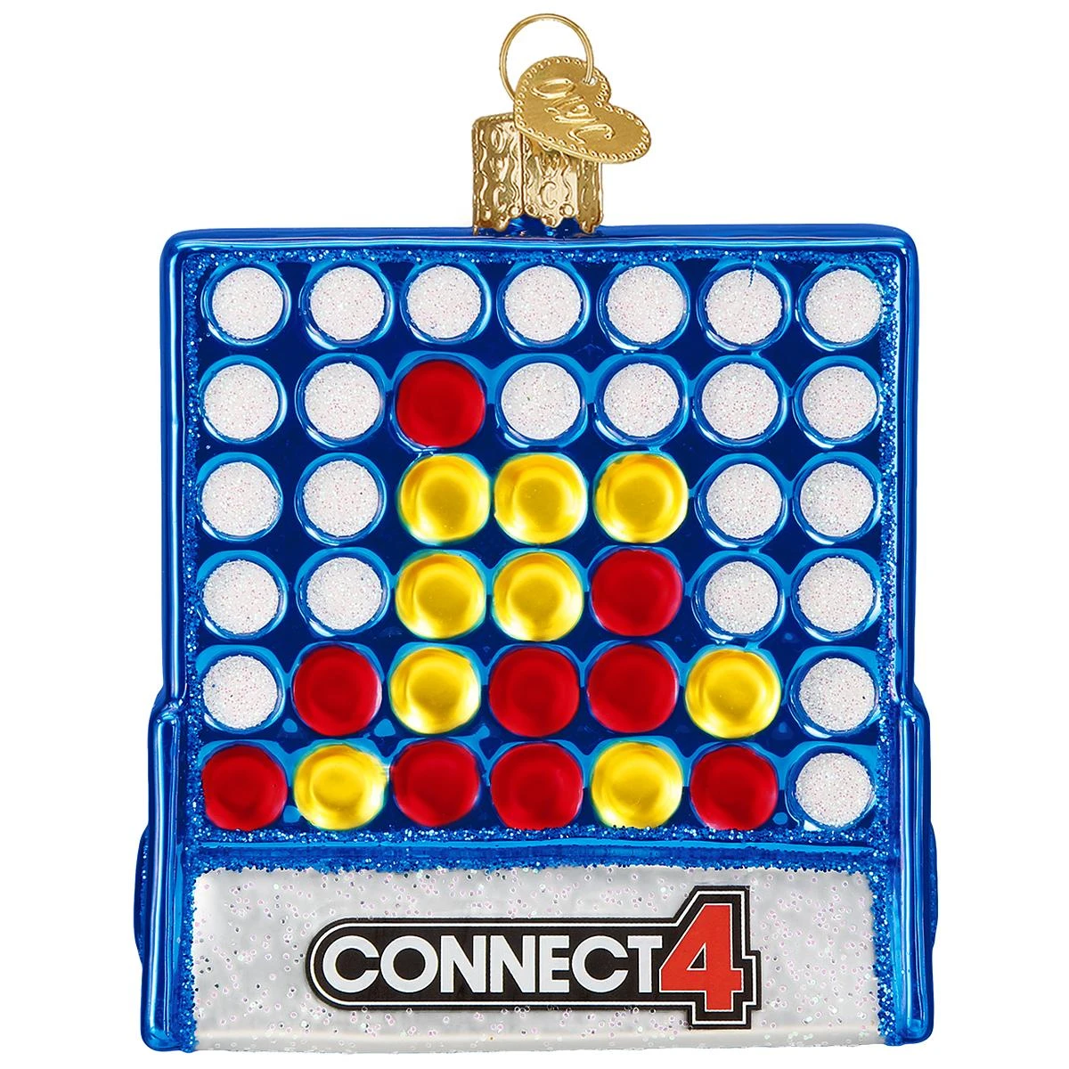 Game on! It’s your turn to play when you add this fun keepsake to the tree. Crafted of glass from Old World Christmas® with sparkling glitter accents, our nostalgic ornament features a blue Connect 4® holder filled with competing red and yellow discs. Stay connected with fans young and old with this 3¼” tall Connect 4® ornament!