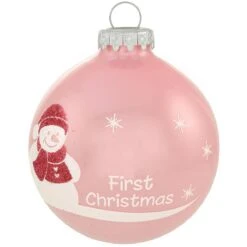 Personalized Baby’s First Christmas Pink Opal Glass Ornament