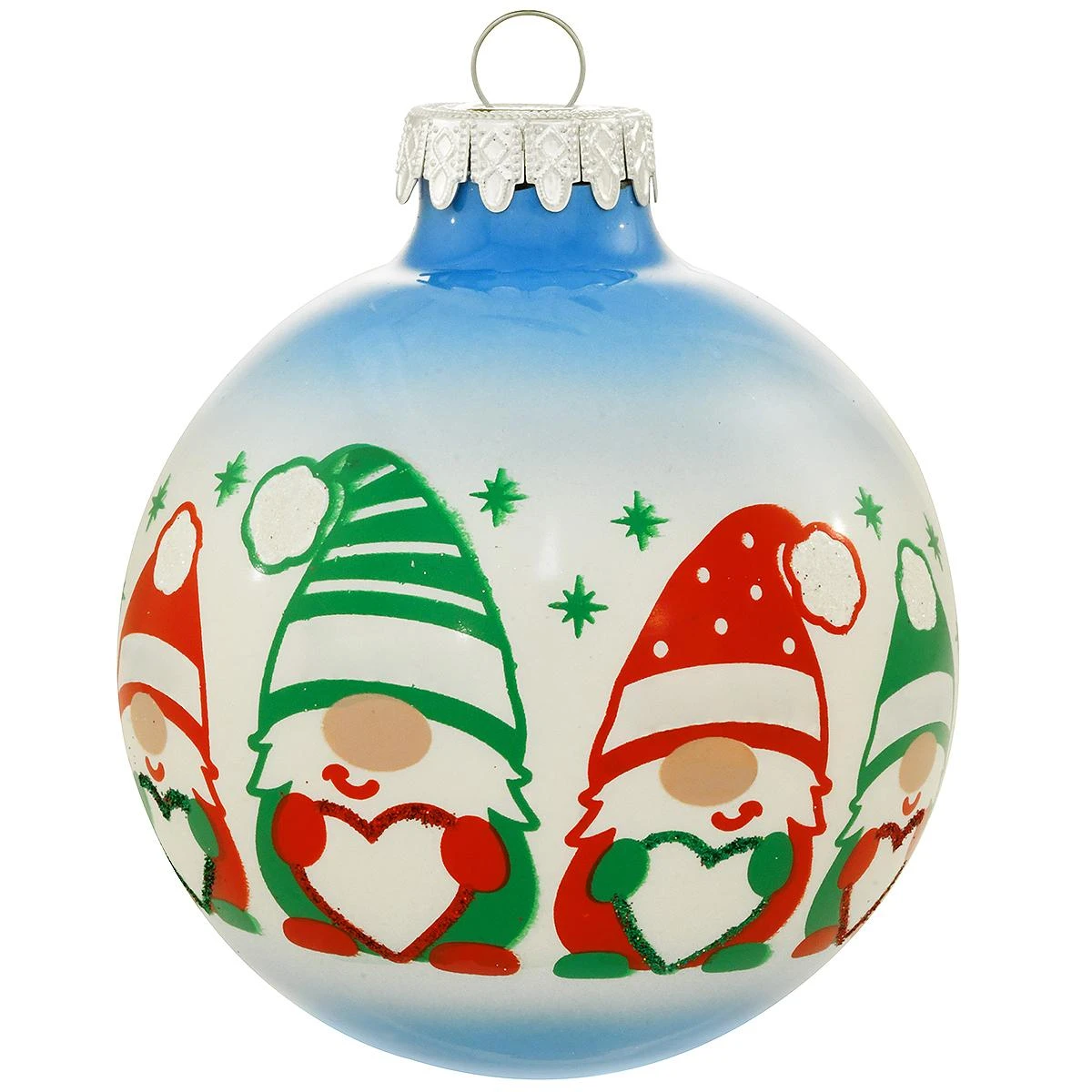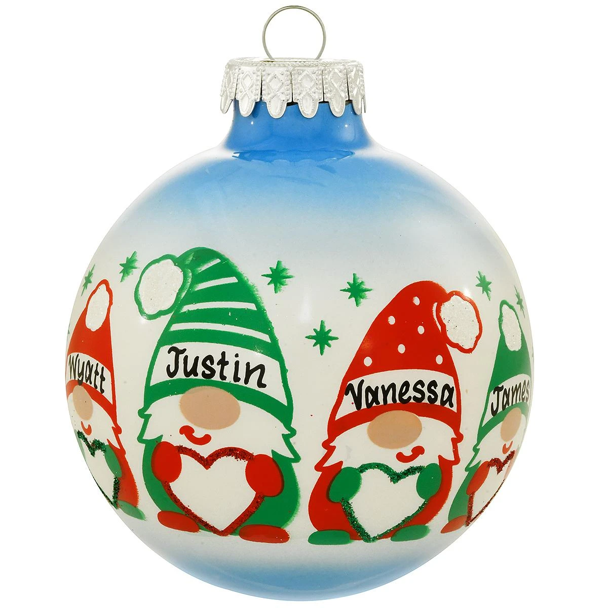 For this happy family…GNOME is where the heart is! Our shimmering 2 tone blue and white ornament is artfully crafted in glass and features 4 gnomes (2 parents and 2 kids) holding hearts as stars twinkle all around. Adorned with vivid red and green glazes and iridescent hand-glittered accents, this 4″ round keepsake makes an enchanting gift for the special family on your list! Crafted in Hungary exclusively for Bronner’s.Â