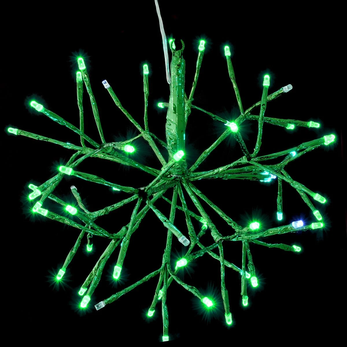 This brilliant green sphere is ideal for illuminating trees, porches, balconies, ceilings and more! Crafted of metallic green wrapped flexible wire, this weather-resistant, 12″ sphere is lit with 64 brilliant LEDs in a mix of shimmering green and twinkling pure white lights. Indoor/outdoor display is wired on a clear cord with 10 ft. plug in lead wire. Some shaping required. 12v, UL listed.