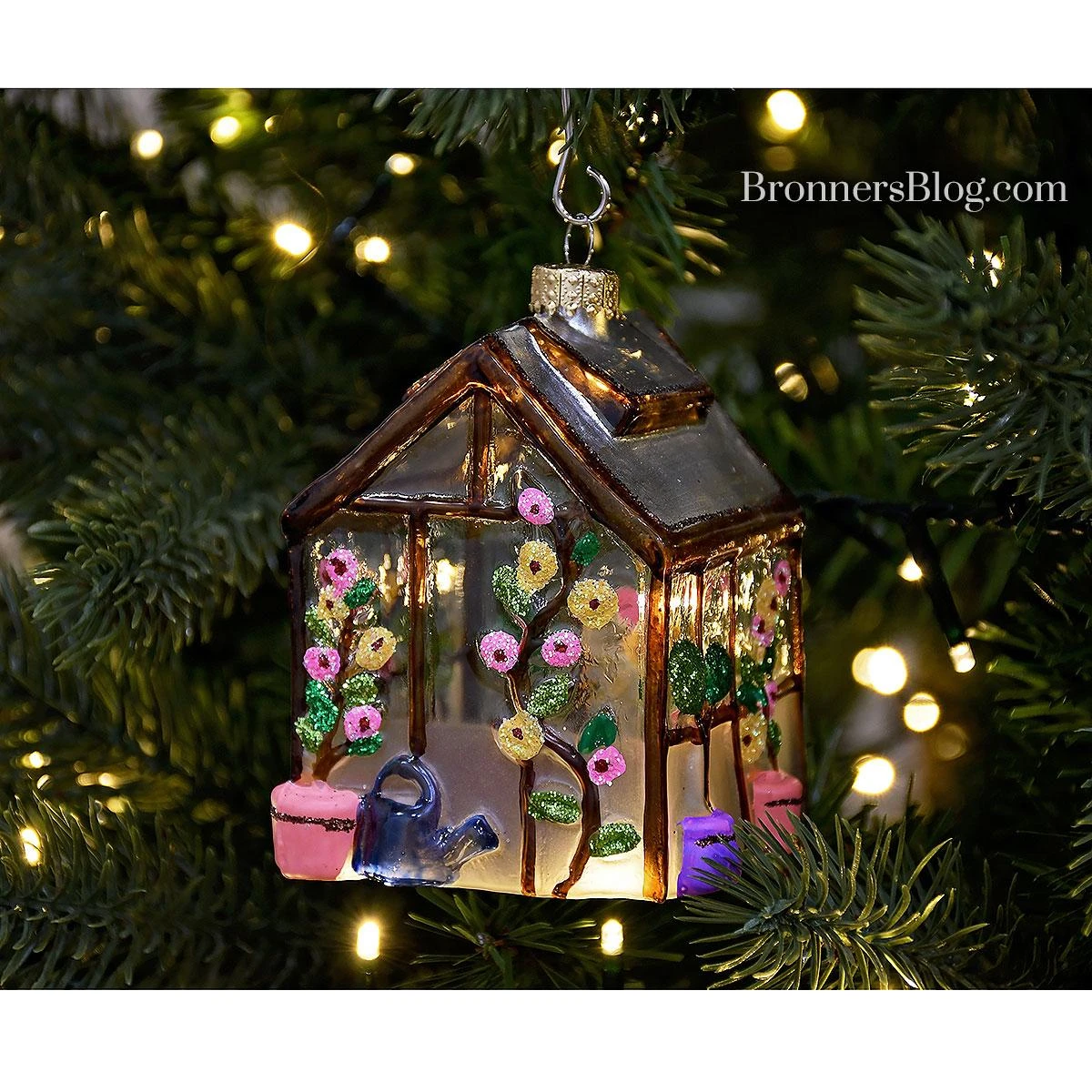 Your gardener is sure to grow more fond of this lovely hothouse with each passing season. Our 3½” tall glass greenhouse ornament is adorned on all four sides with clear windowpanes and lush potted plants. Shimmering with colorful glazes and dazzling glitter accents, this charming keepsake is no garden variety decoration! Ornament comes ready to hang with a gold cord.