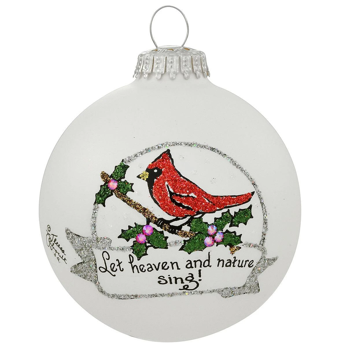 This beautiful cardinal and holly design by Teresa Thibault expresses the joyous sentiment Let Heaven and Nature Sing! Handcrafted of glass with inspired brushstrokes, colorful glitter, and a sprinkling of dazzling Swarovski crystals, this unique 3¼” glass Heart Gifts ornament is proudly made in the USA and comes attractively packaged for safe storage and easy gift giving. It’s sure to bring joy to the world…and the tree…of a special someone on your Christmas list!