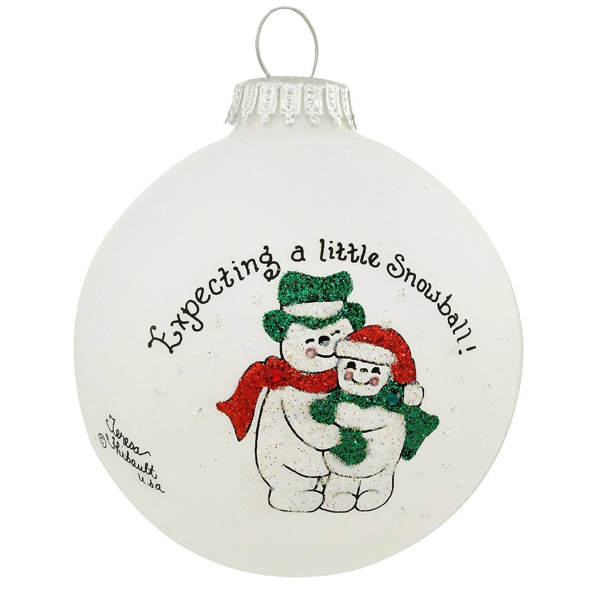 A baby is a wonderful gift, and this happy snow couple couldn’t be more excited to be “Expecting a Little Snowball!” Uniquely crafted with inspired brush strokes and colorful glitter accents, this charming 3ΒΌ” glass ornament makes a wonderful gift for the expecting couple in your circle of friends and family! Hand painted in the U.S.A. and adorned with Swarovski crystals, this special Heart Gifts design by Teresa Thibault comes attractively packaged for safe storage and easy gift giving.