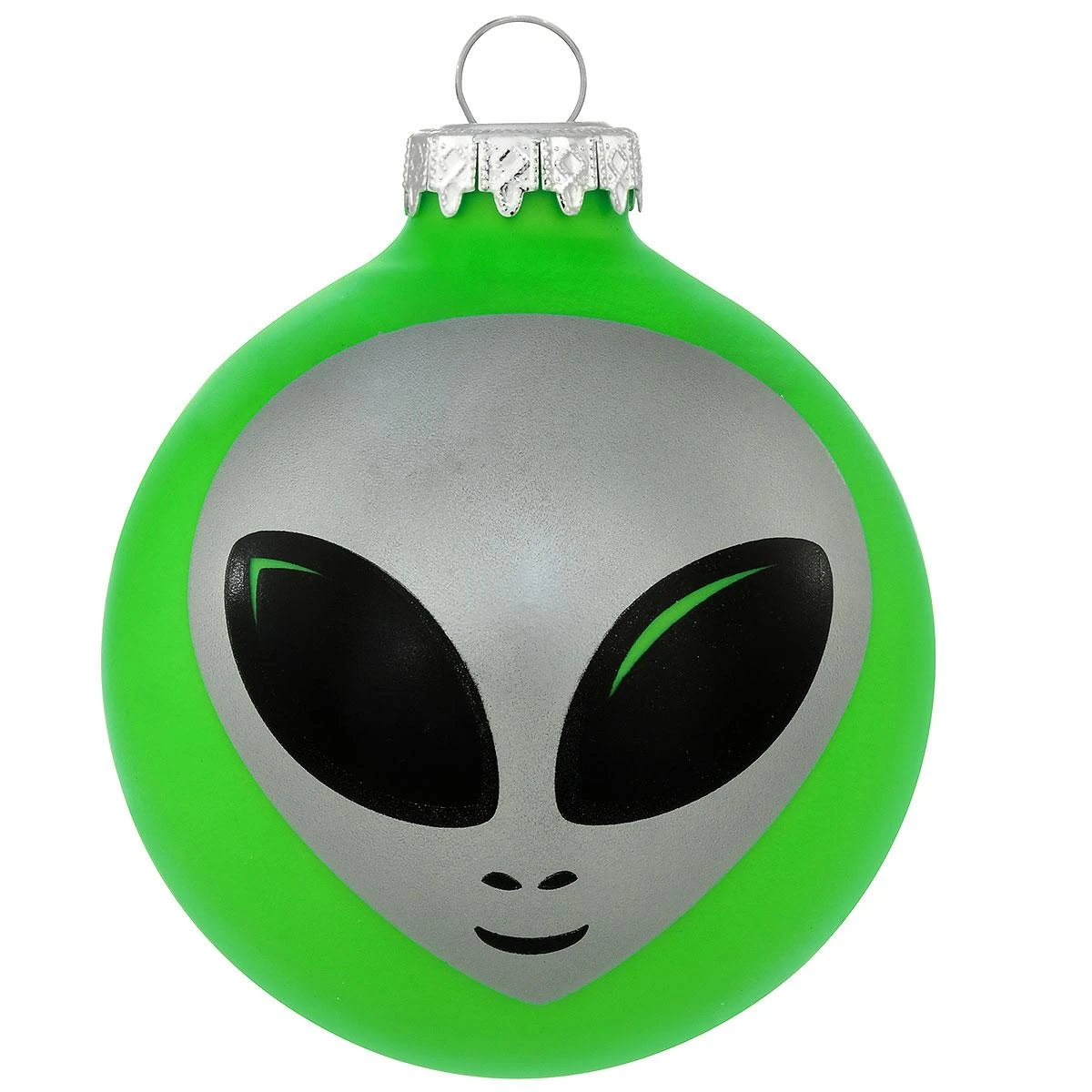 Don’t alien-ate this unique ornament from your tree, our far-out friend is sure to find it spacious! A silver alien face is printed on the electrifying green surface of this 3″ round glass ornament that is exclusively crafted for Bronner’s in Hungary. Allow one of Bronner’s talented artists to add a touch of personal-ityβ’ to this alien face ornament with a black paint pen at no additional charge! It is sure to make the perfect gift for the sci-fi or space enthusiast in your life.