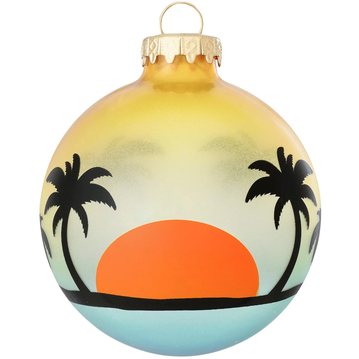 Please select the alternate image for a view of this palm trees with sunset ornament without personalization.