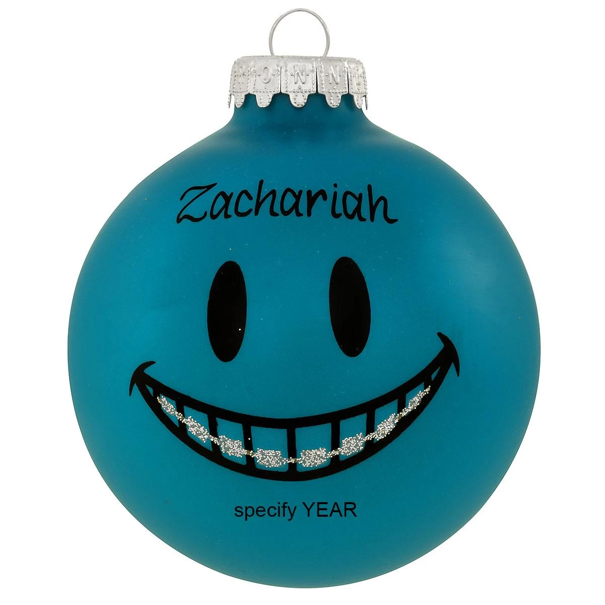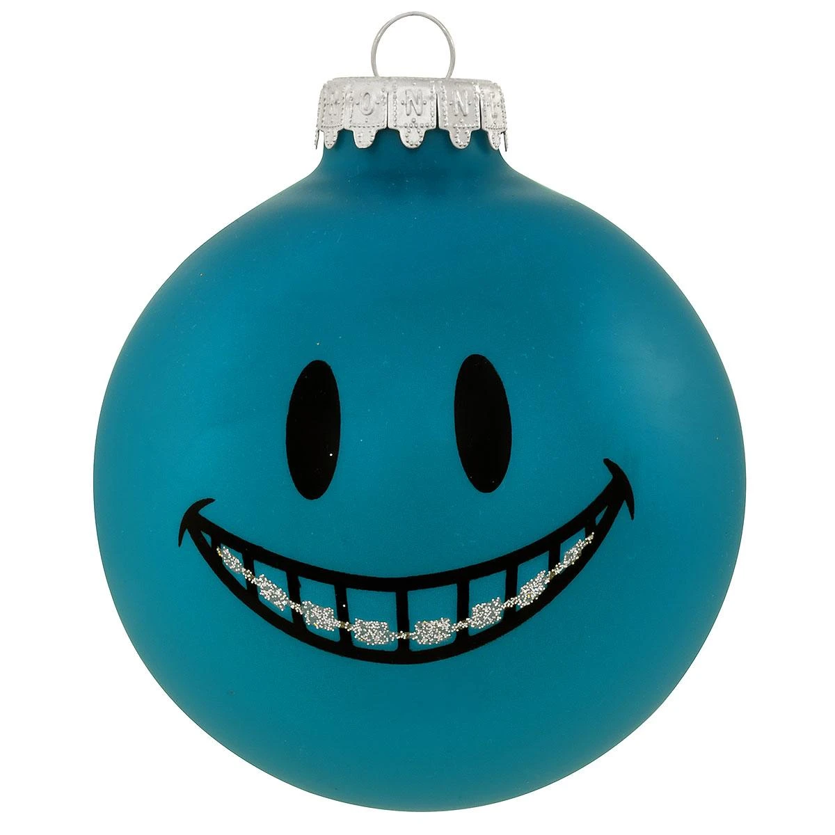 Working their way to a prize-winning smile, your loved ones will have to brace themselves when they receive this perfect keepsake! Exclusively crafted for Bronner’s from glass in Hungary, our 3″ round ornament features a stunning blue finish with a smiling face wearing brilliant braces that shine in glistening glitter. This charming blue smile face with braces ornament is sure to put a beautiful toothy grin across the face of friends and family this year! Allow one of our talented Bronner’s artists to add a touch of personalization with a black paint pen at no additional charge.