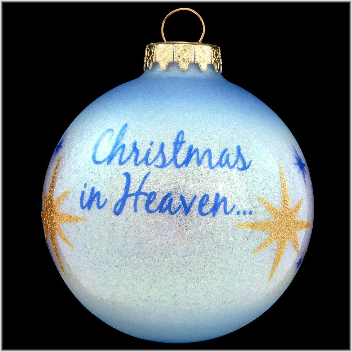 Commemorate the life of a loved one that has passed on to Heaven with our exclusive ornament that will honor him or her each season as it hangs on your tree. Artfully crafted in Hungary, our 3″ tall ornament features a revolutionary interior coating of shimmering white glitter that sparkles through the two-tone glass like an infinite number of stars. The words Christmas in Heavenβ¦ are printed in blue and are surrounded by a pattern of blue and gold glittering stars. Allow one of our talented Bronner’s artists to personalize the name of your loved one with a blue paint pen at no additional charge.