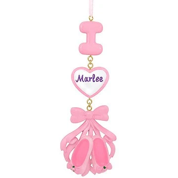 Your little ballerina will dance with delight when she sees this charming ornament hanging on the tree Christmas morning! Whether personalized with a purple paint pen by our professional Bronner’s artists at no additional charge or plain, this adorable I love ballet dangle ornament is sure to be a treasured keepsake with your loved one for years to come. With eye-catching glazes and sparkling glitter accents, this personalized ballet ornament is 6½” tall and crafted of resin. Comes ready to hang with a light pink ribbon.