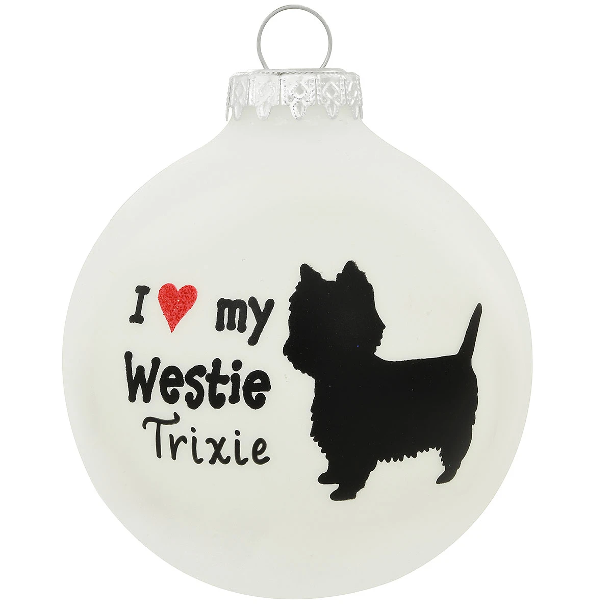 Our pets steal our heart but give us theirs; maybe that’s why it seems so easy for them to love us unconditionally! Crafted in Hungary from glass, our Bronner’s exclusive 3″ tall I ♥ My Westie ornament celebrates the love and devotion you have for your faithful and furry friend! Allow one of our professional Bronner’s artists to add a personal touch with a black paint pen at no additional charge to this charming West Highland White Terrier ornament.