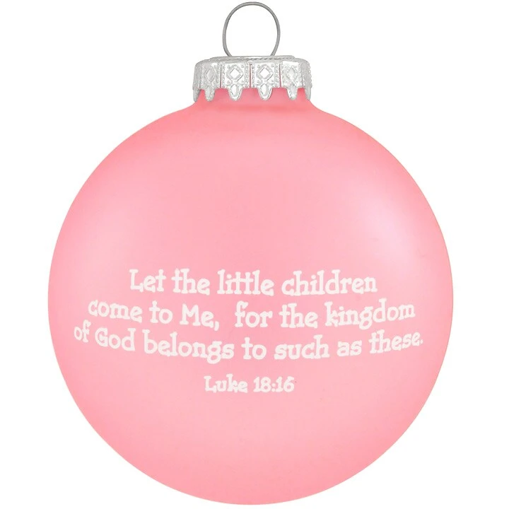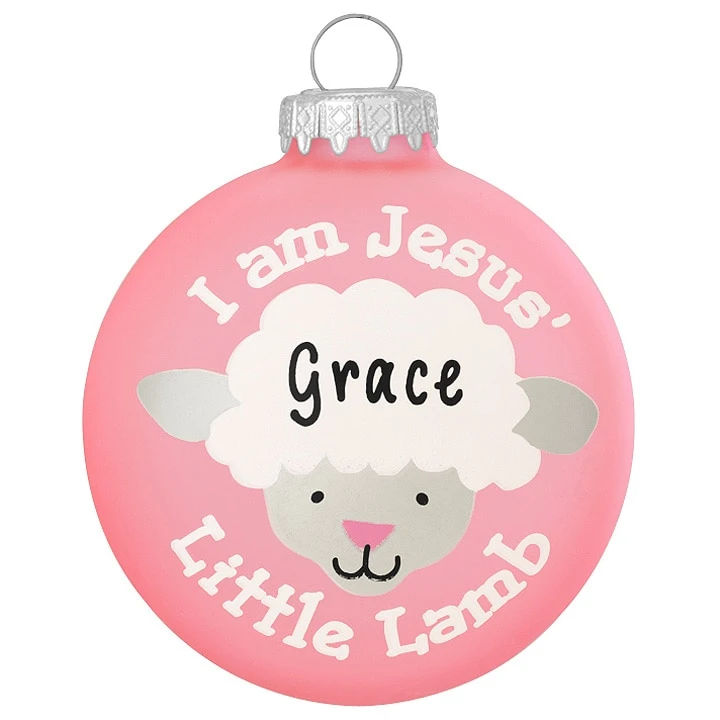 Have you herd? There’s nothing sheepish about this ornament proudly declaring being the great Shepherd’s little lamb! Exclusively crafted for Bronner’s from glass in Hungary, our 3″ tall frosted rose ornament is double sided. The front displays an adorable lamb framed by the words I am Jesus’ Little Lamb while the back features the scripture Luke 18:16 from the Bible. Allow one of our professional Bronner’s artists to add a personalized touch with a black paint pen at no additional charge.