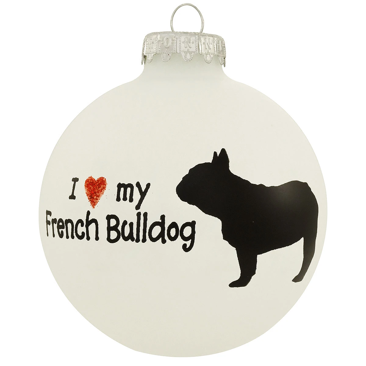 Our pets steal our heart but give us theirs; maybe that’s why it seems so easy for them to love us unconditionally! Crafted from glass in Hungary and measuring 3″ round, our Bronner’s exclusive “I ♥ My French Bulldog” ornament celebrates the love and devotion you have for your dog … a faithful and furry friend! Allow one of our professional Bronner’s artists to add a personal touch with a black paint pen at no additional charge to this keepsake ornament.