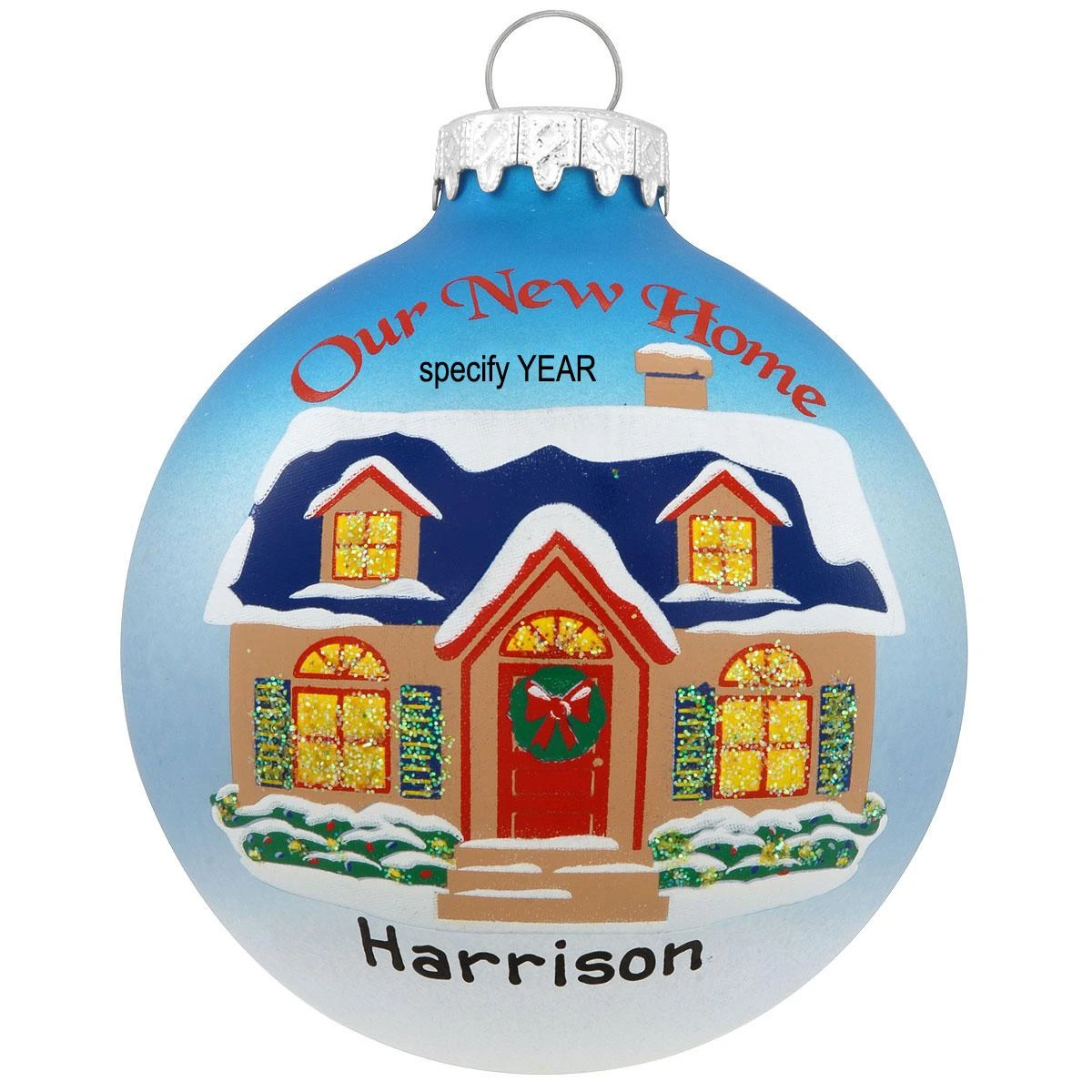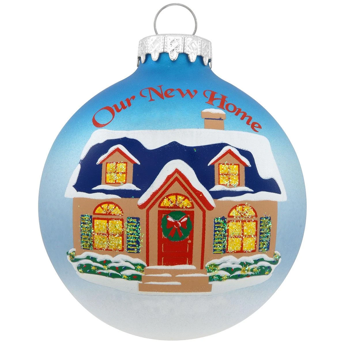 This attractive ornament has the curb appeal you’ve been searching for! Created exclusively for Bronner’s from glass in Hungary, our 3″ tall ornament has a beautiful three-tone matte finish in dark-blue, light-blue, and white. The sentiment Our New Home is arched in a red font above a festively decorated house dusted with snowfall. Makes a great and commemorative gift idea for the new homeowners on your Christmas list when you allow one of our talented Bronner’s artists to personalize this keepsake with a black paint pen at no additional charge!