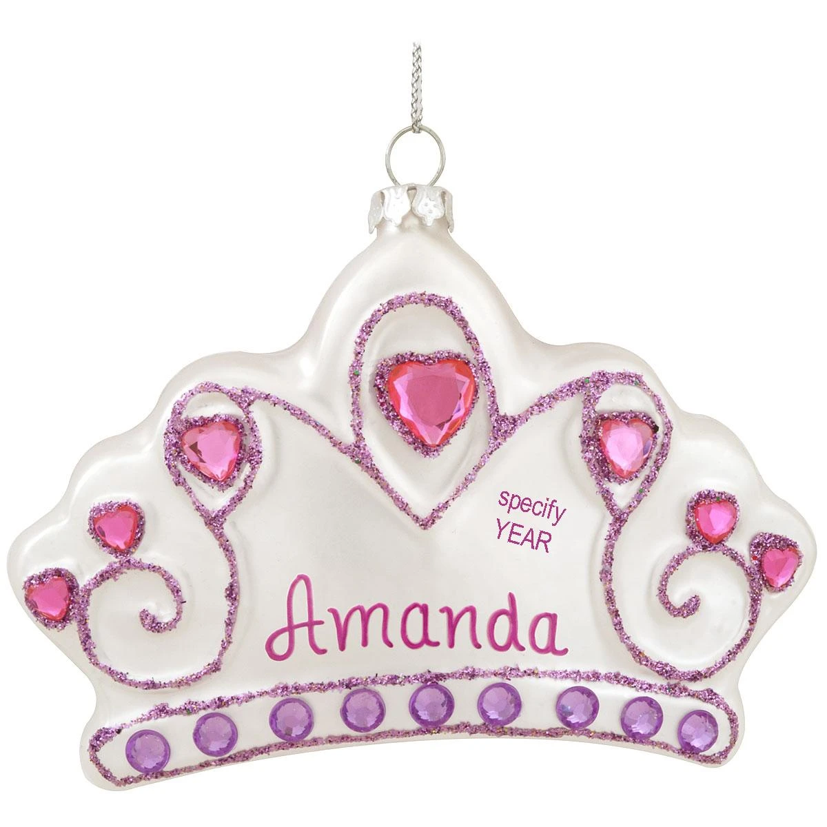 Crown your princess’s ornament collection with this magnificent jewel! Coming ready to hang with a silver cord, our 2¾” tall x 4¼” wide ornament is artfully crafted of glass and painted with a dazzling pearl glaze accented with sparkling glitter and gemstone accents in pretty pinks and purples. Your little “Highness” will be happy to display this special gift in the royal tree-sury!