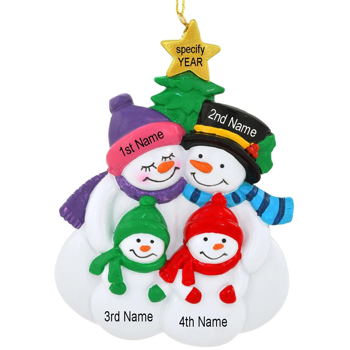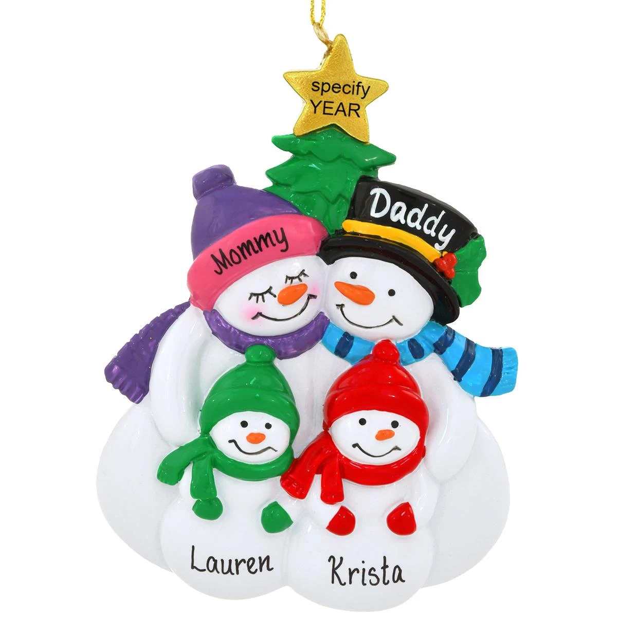 Please select “ADD TO CART” to personalize this ornament with a 1st Name/Adult Female (up to 8 characters), 2nd Name/Adult Male (up to 8 characters), 3rd Name/Child (up to 8 characters), and 4th Name/Child (up to 8 characters). Names will be penned from left to right in the order given.