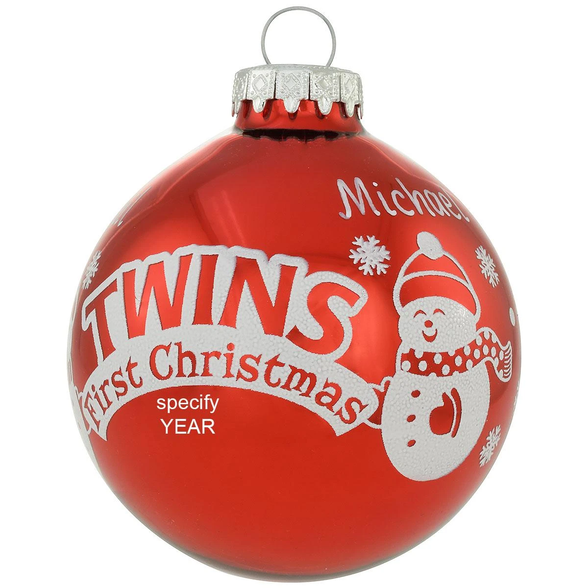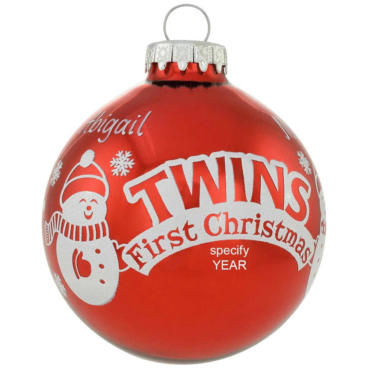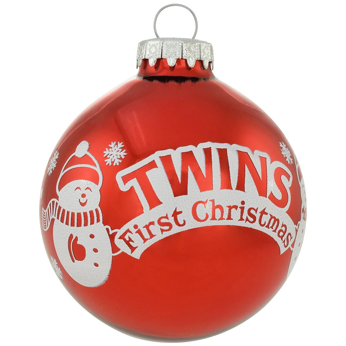 With twins, baby’s first Christmas is TWICE as nice! Exclusively crafted for Bronner’s from glass in Hungary, our 3″ round ornament celebrates the arrival of twins with a reflective red finish. The sentiment “TWINS First Christmas is framed by two snowmen and a banner of snowflakes and polka dots. Allow one of our talented Bronner’s artists to add a personalized touch with a white paint pen at no additional charge to create the perfect gift with personal-ityâ„¢ to celebrate twin siblings!