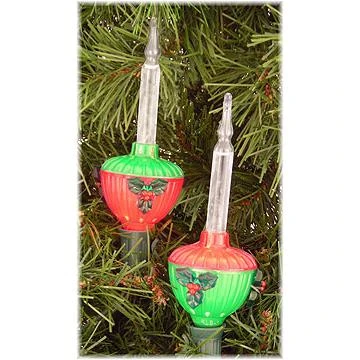 Seven, 4½” tall red and green bubble lights accented with holly for an eye-catching appeal from every angle.