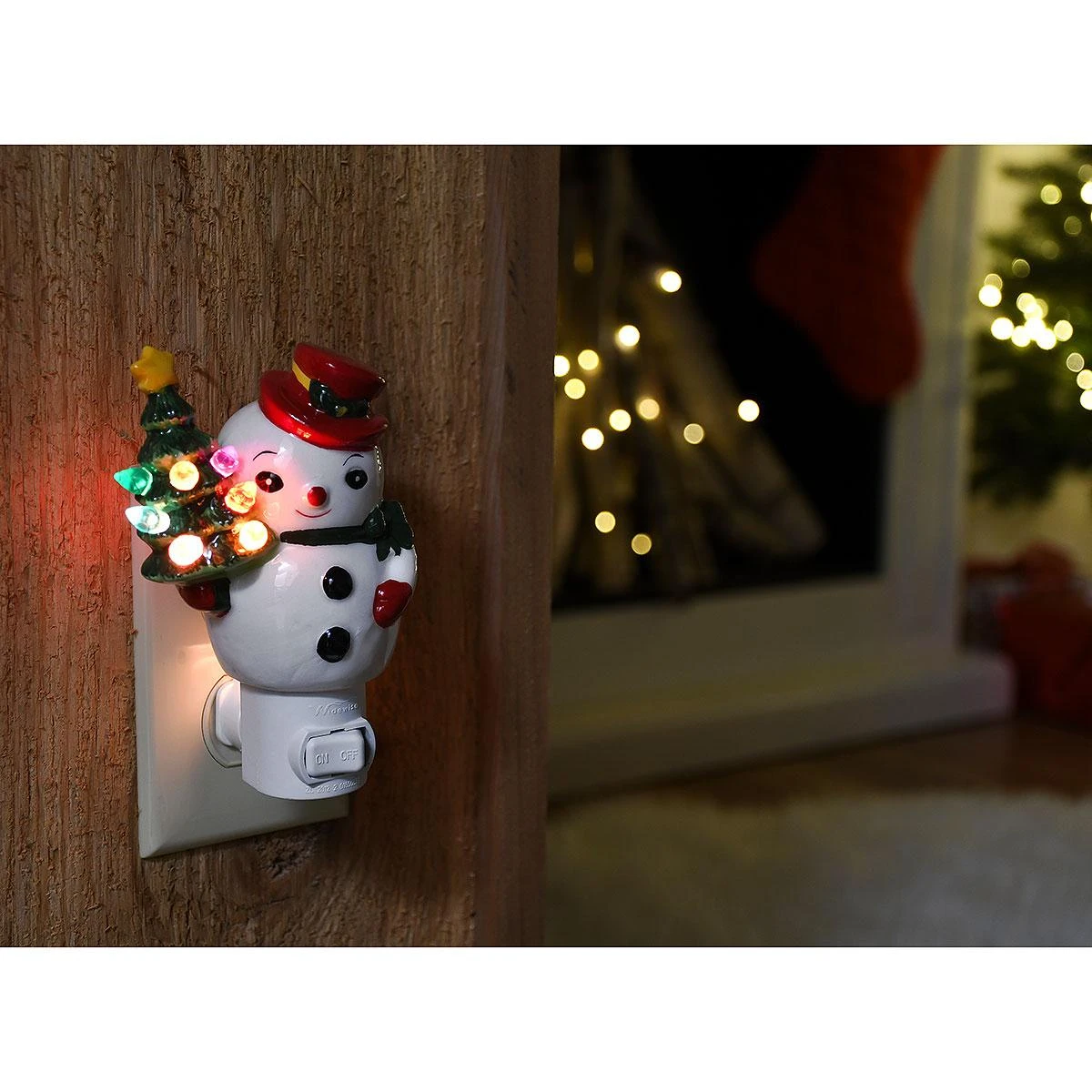 This retro snowman is vintage vibin’ with a ceramic tree, like Grandma used to have, to keep your evenings so merry & BRIGHT! Crafted of ceramic, this UL certified® Christmas night light measures approximately 5″ tall from top to base. Features a 360 degree swivel plug-in base with convenient on/off switch.