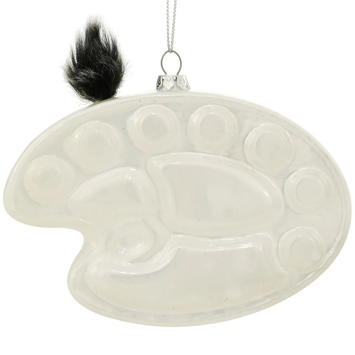 Don’t be afraid to show your true colors! A great gift for your artist or crafter, our watercolor palette and brush ornament is embellished with vibrant dabs of paint and eye-catching glitter accents. The brush even has a plume of soft plush bristles! Crafted of glass and resin, keepsake comes ready to hang on a silver cord and measures approximately 4ΒΎ” tall x 5ΒΌ” wide.Β